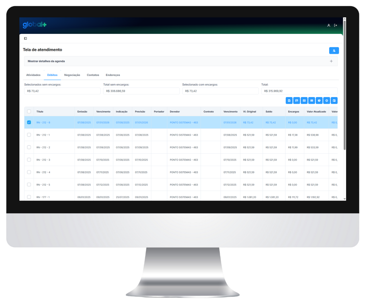 Conte com a inteligência e infraestrutura da Global, a empresa #1 em recuperação de crédito B2B no Brasil. O Global+ permite envio direto de títulos para nossa equipe especializada com apenas um clique, sem processos manuais ou retrabalho.